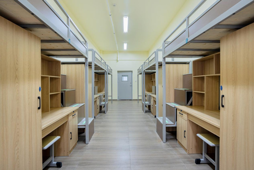 (2)宿舍配备书桌、凳子、空调、单人床(尺寸:90cm×210cm)等基础生活设施,其他诸如被子、褥子、枕头等需学生自备。