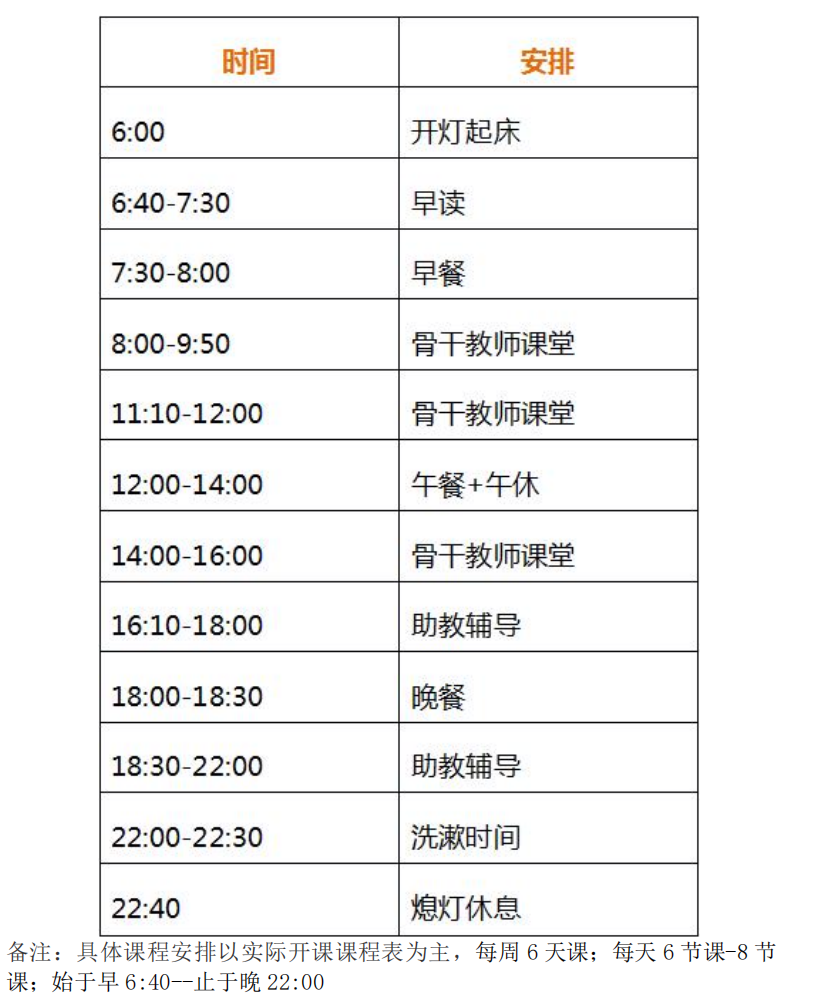 班主任老师为每一位学生详细规划每天 13 小时的个性化学习计划,做到“堂堂清、日日清、周周清、月月清”,确保学生知识点无遗漏,*稳步提升。助教老师全方位陪同孩子,使学生抓住点滴时间,永远只做与学习有关的事情。闭上眼睛就睡,睁开眼睛就学,专业毕业班带班经验老师+专业助教全方位陪同孩子学习,随时随地答疑解惑