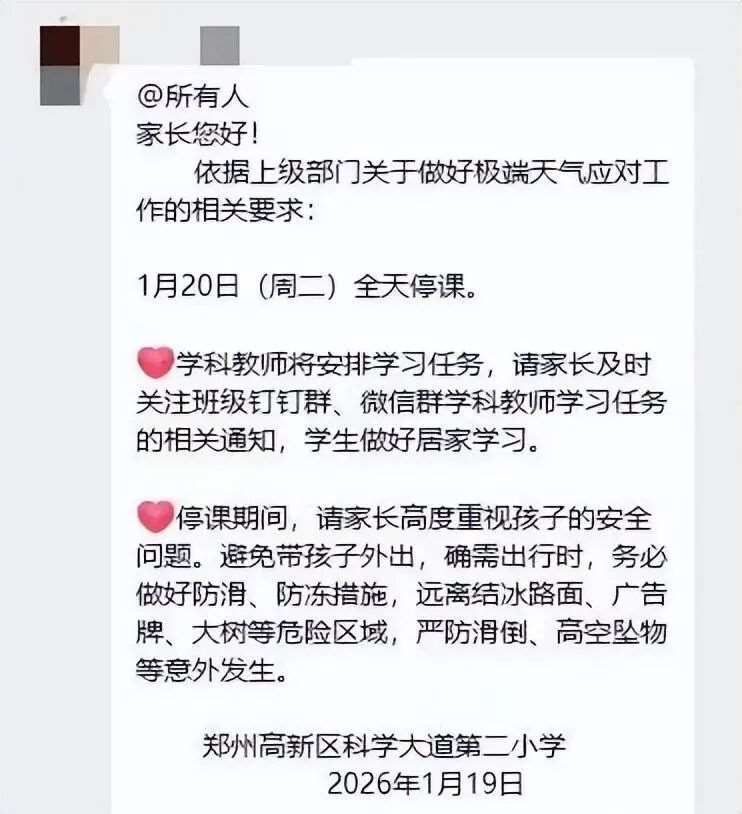 郑州多区通知(1月20日)继续停课!