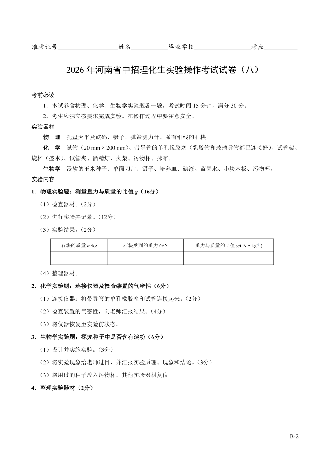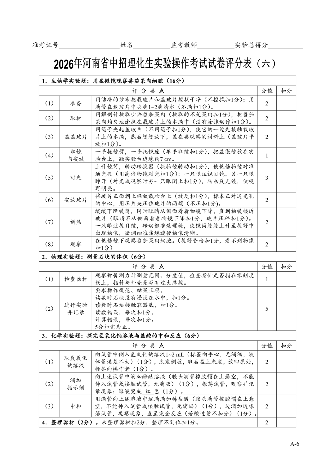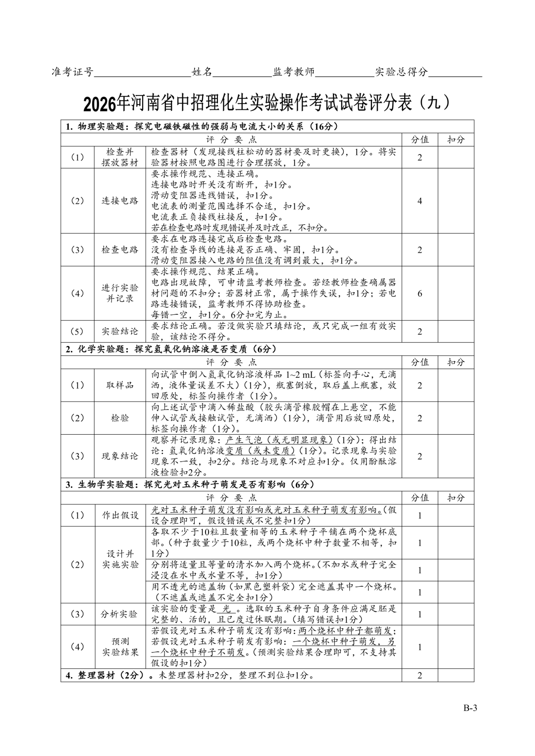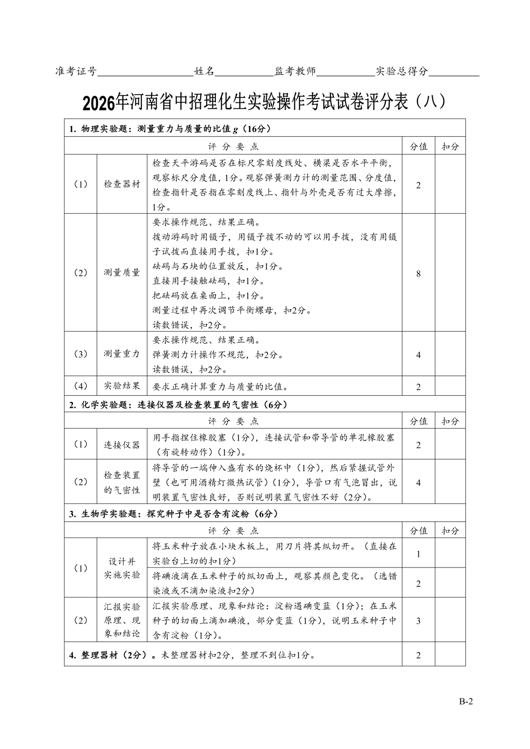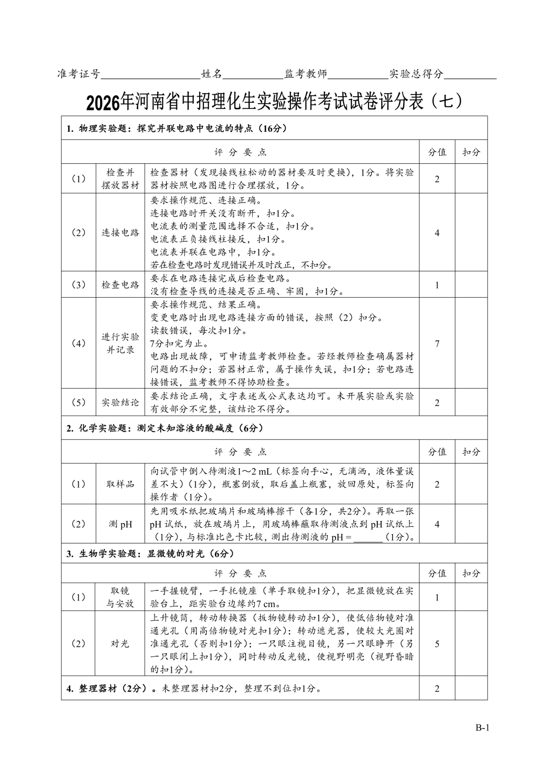 2026年郑州中招理化生实验考试时间确定!试卷+评分表发布!