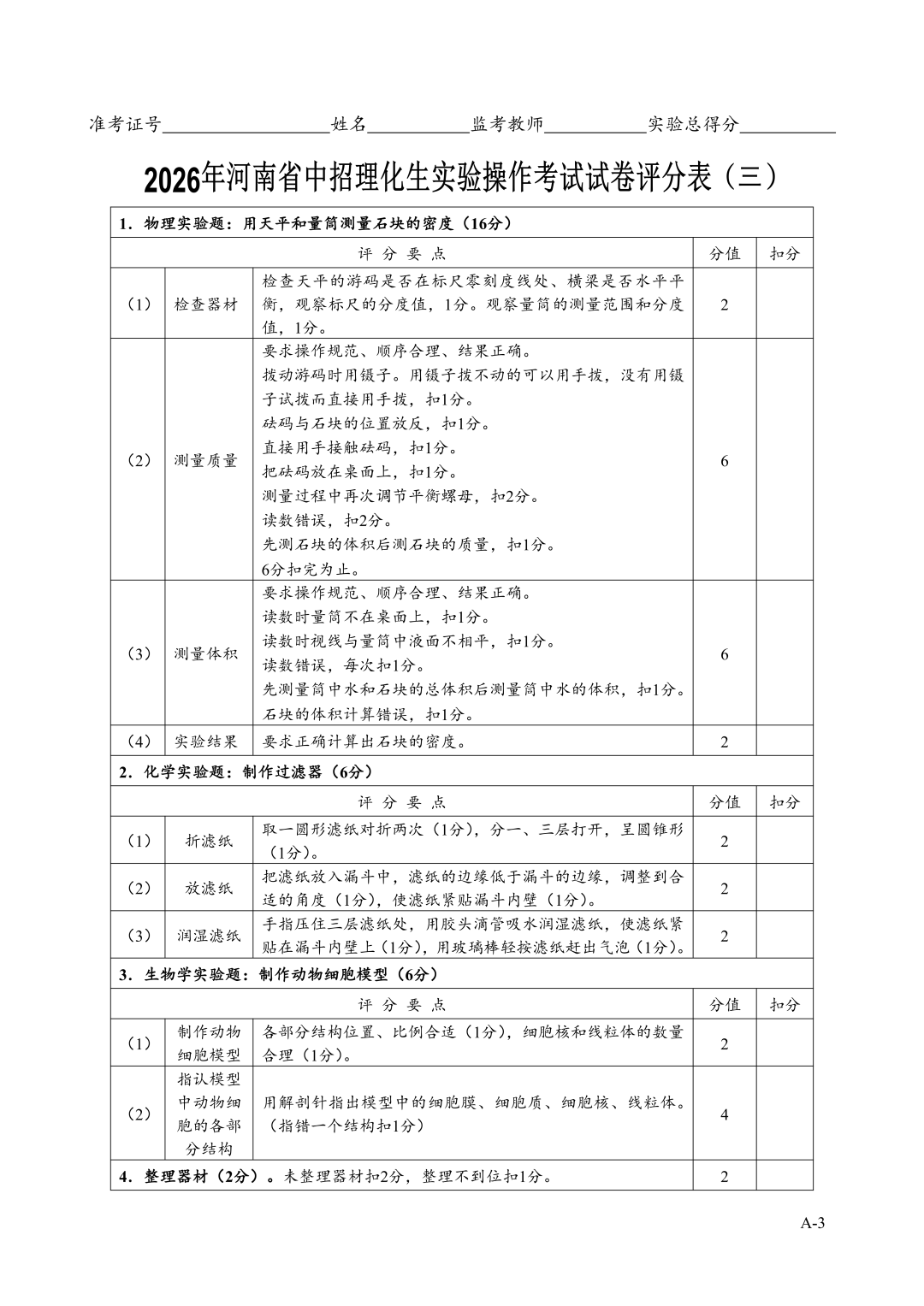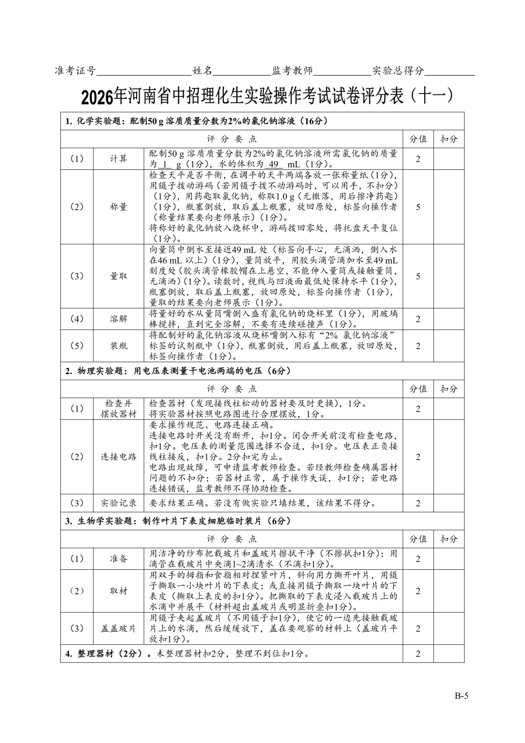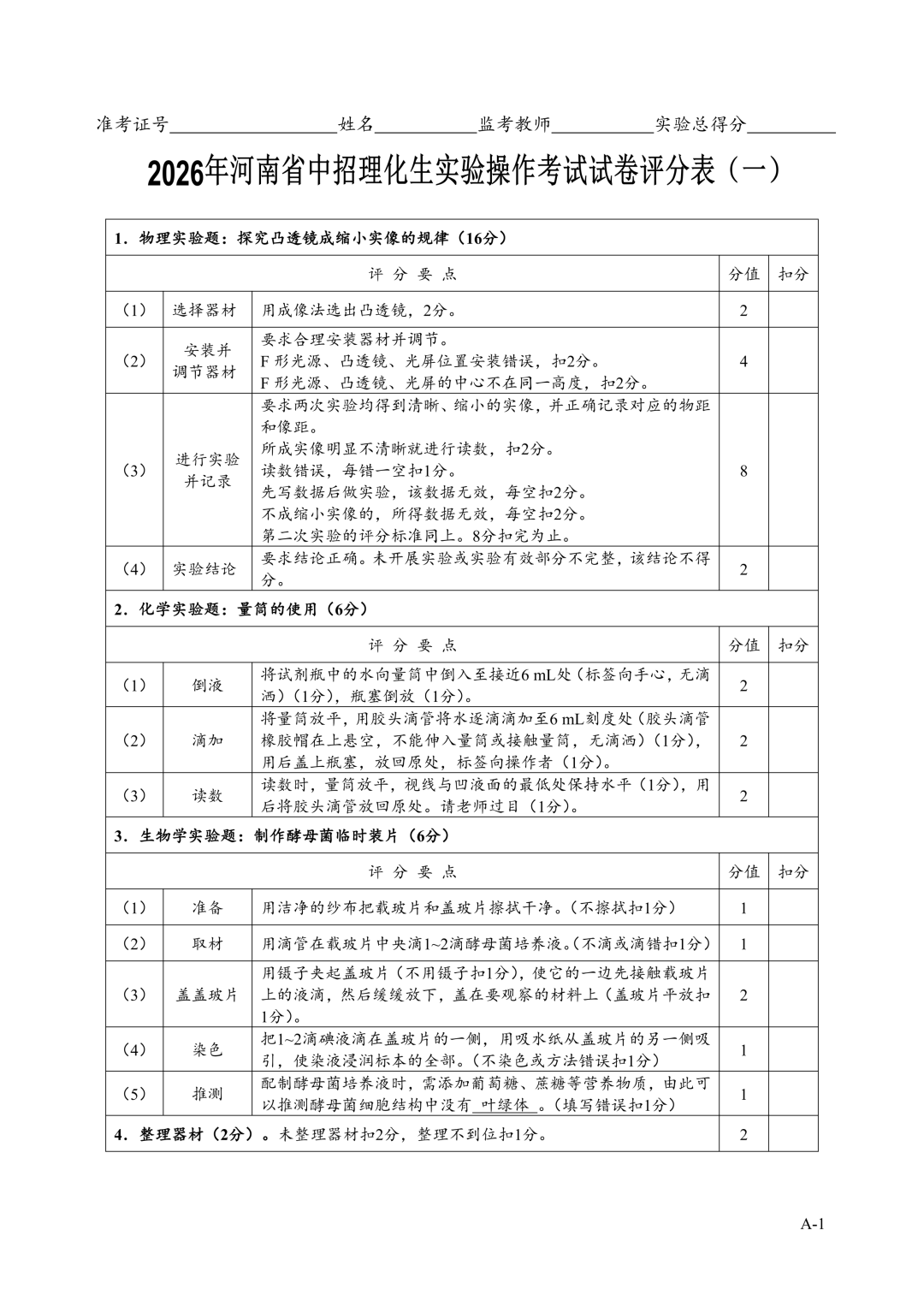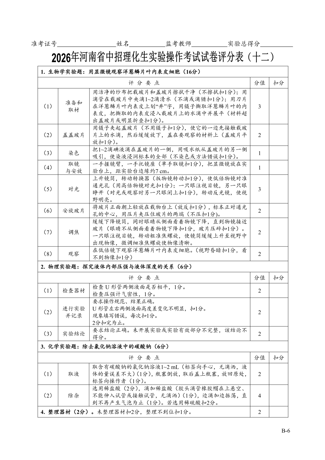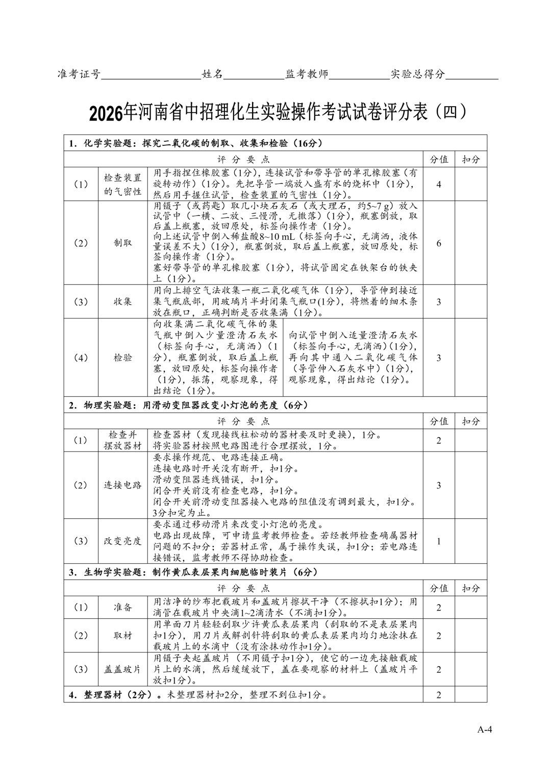 2026年郑州中招理化生实验考试时间确定!试卷+评分表发布!