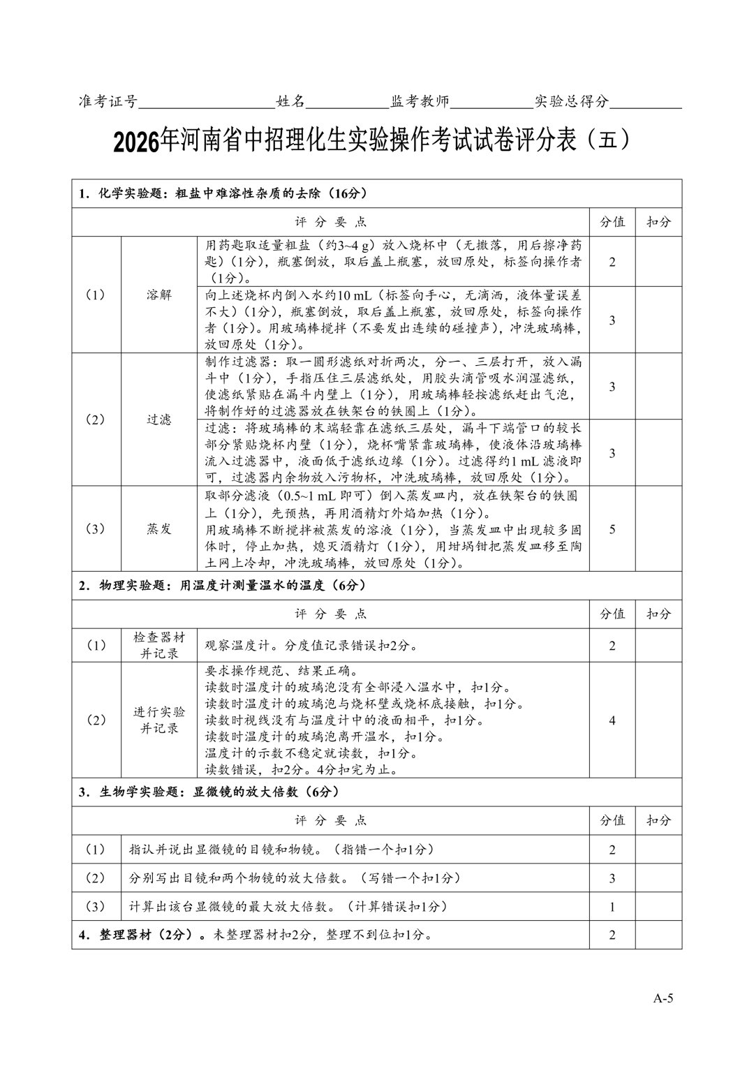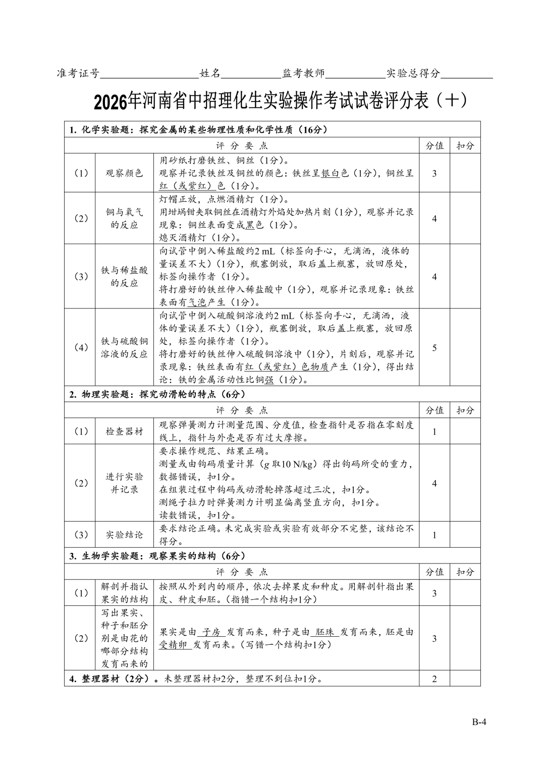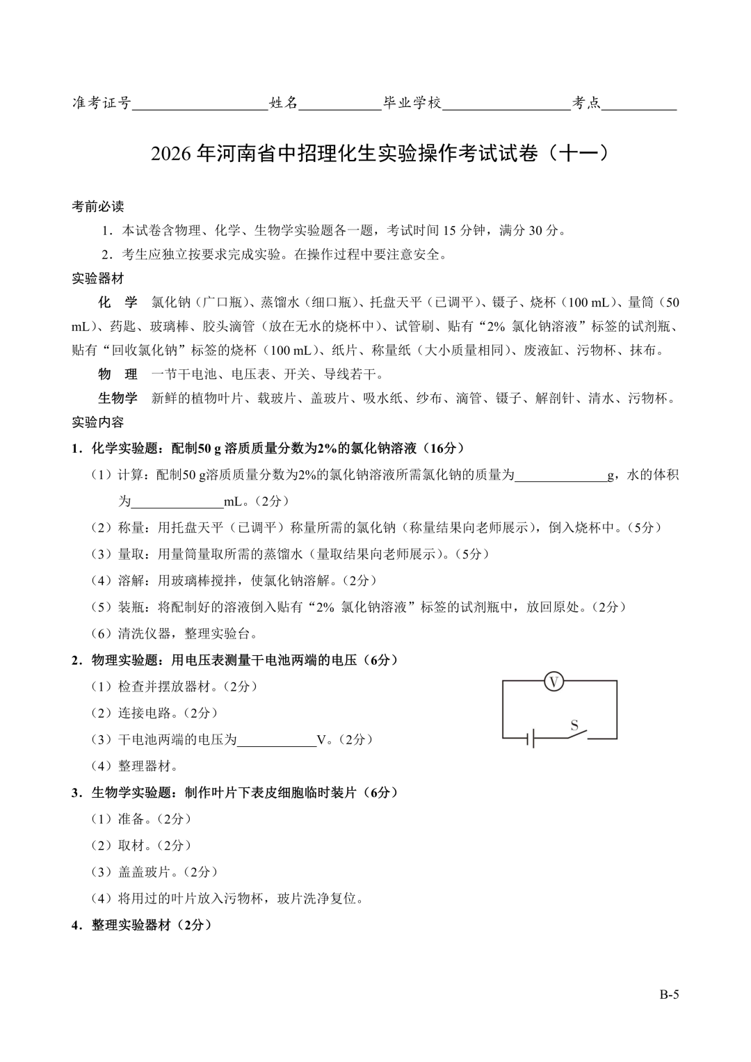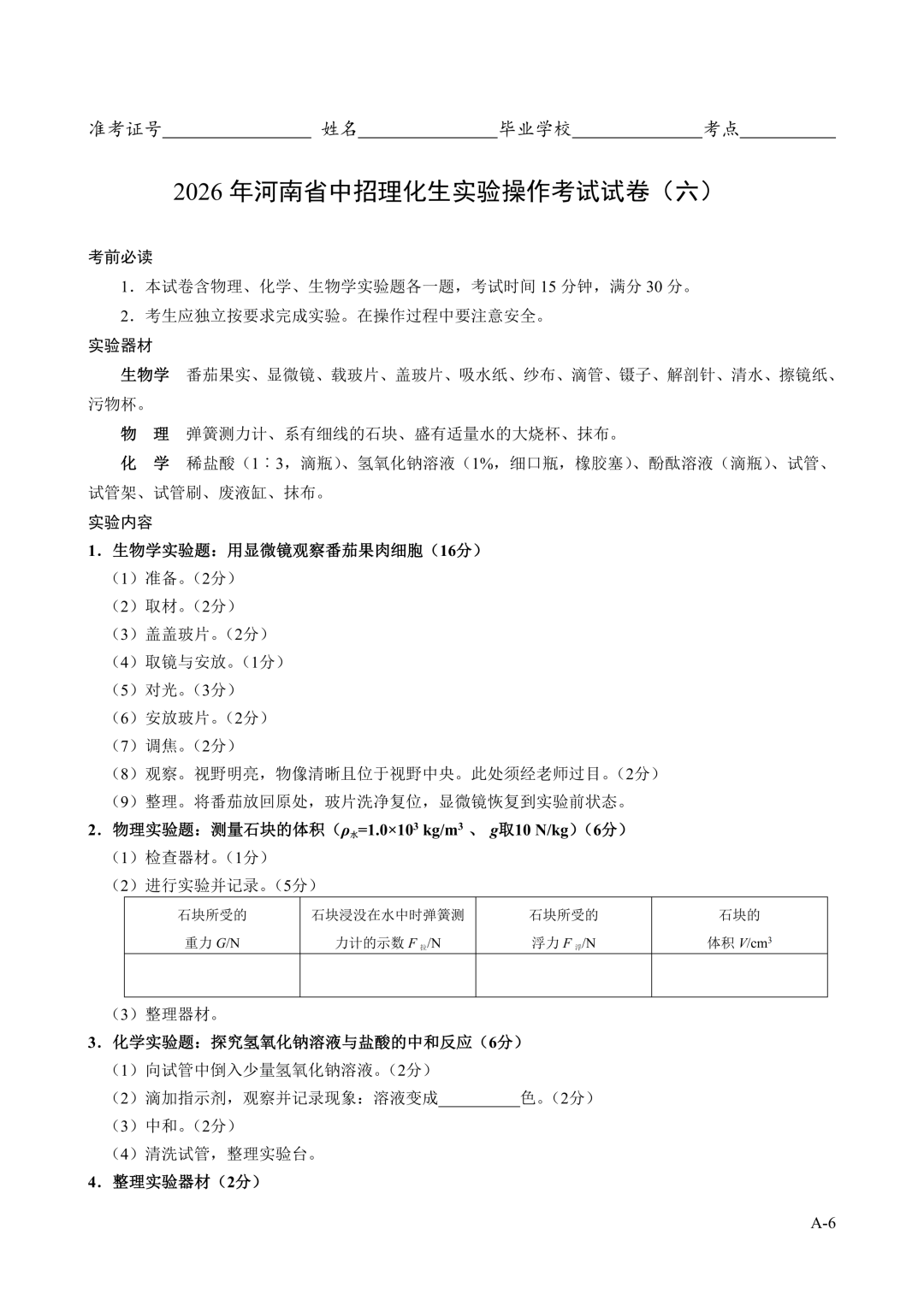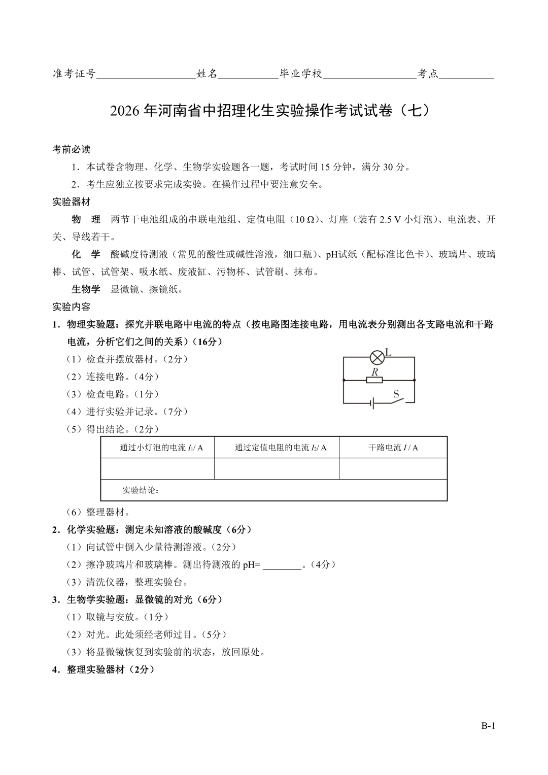 2026年郑州中招理化生实验考试时间确定!试卷+评分表发布!