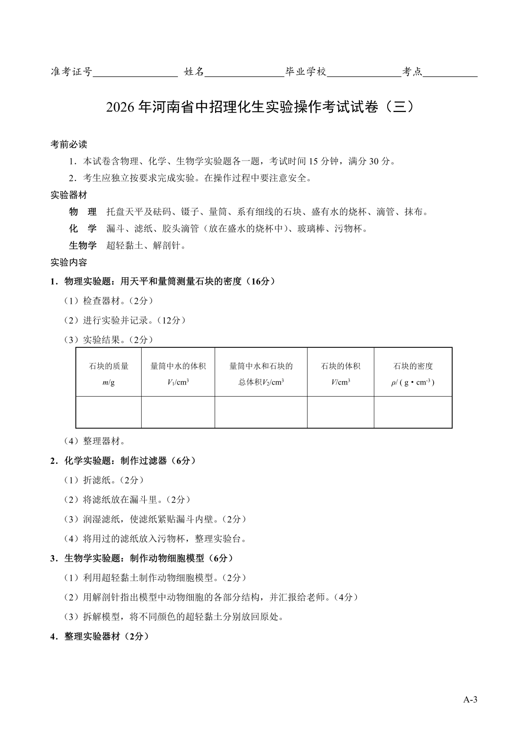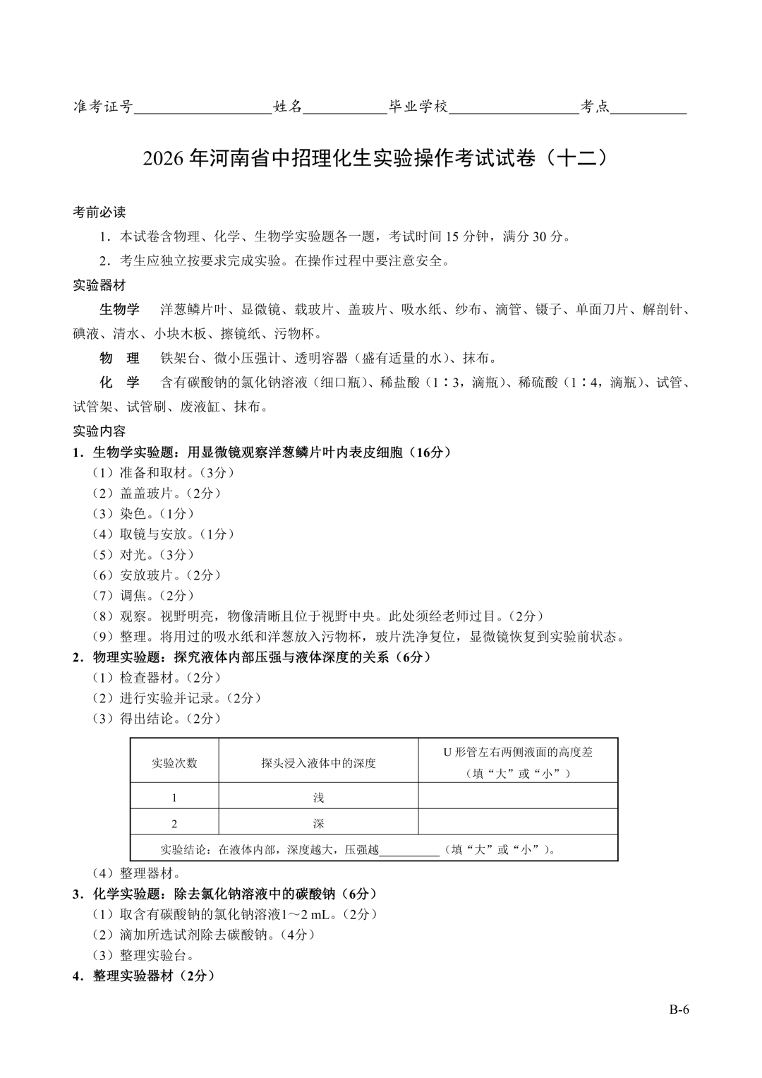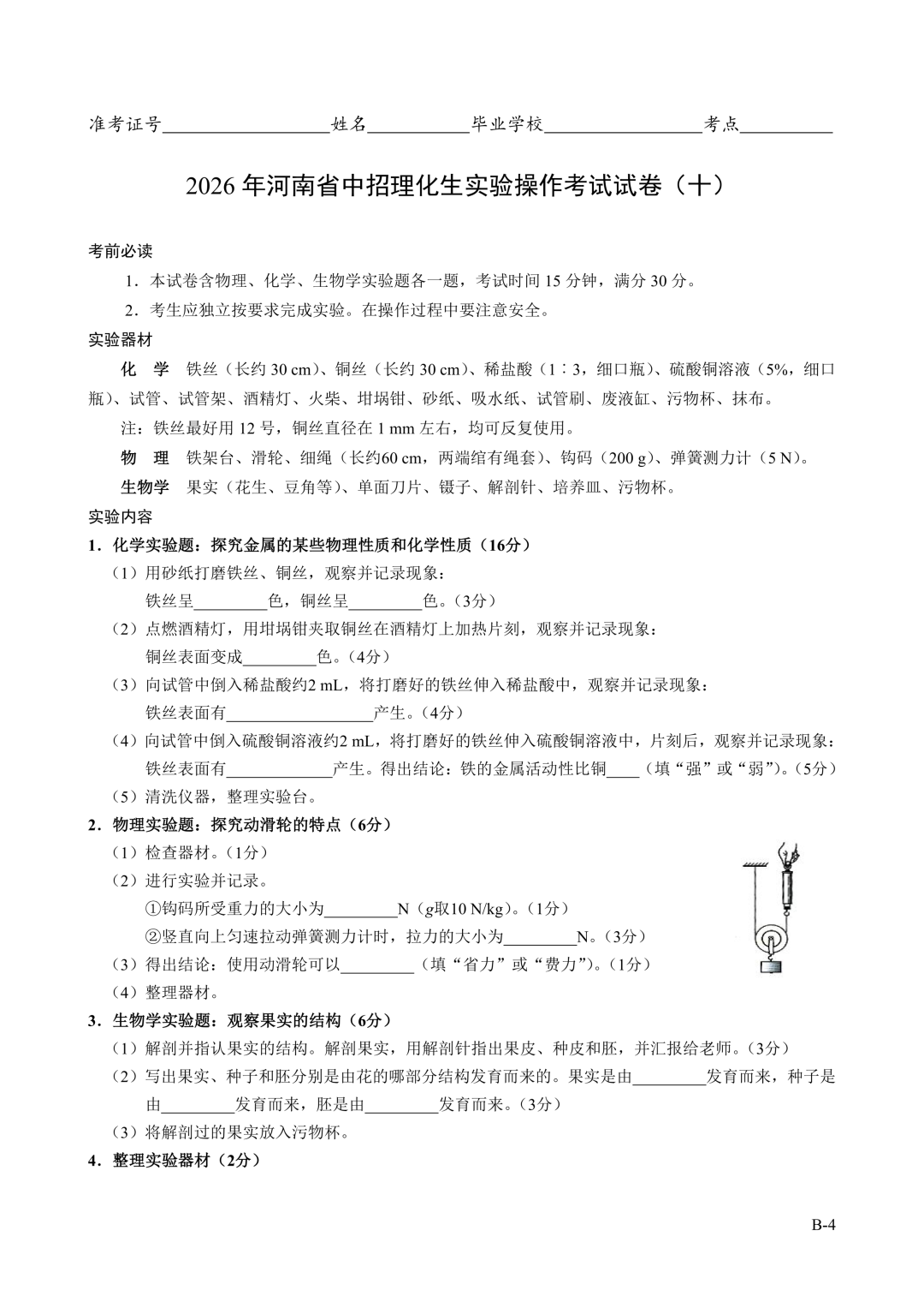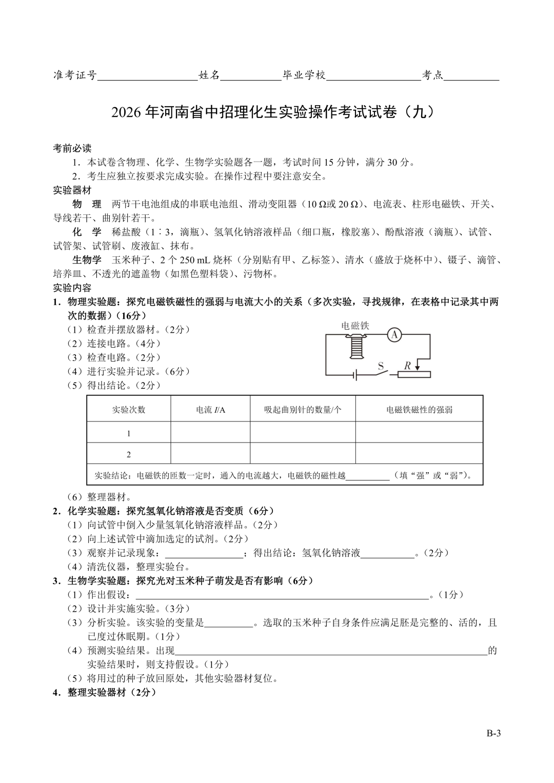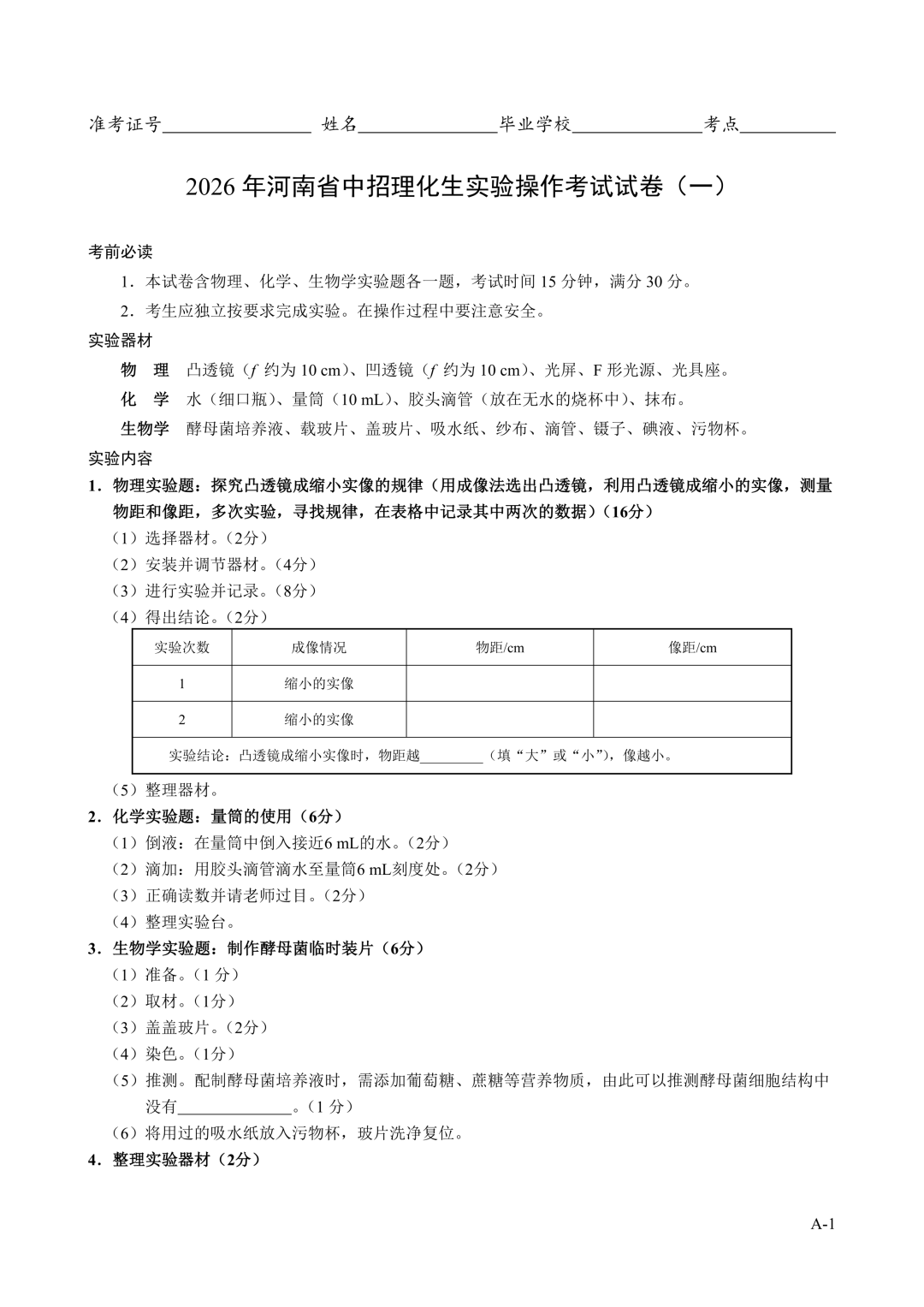 2026年郑州中招理化生实验考试时间确定!试卷+评分表发布!
