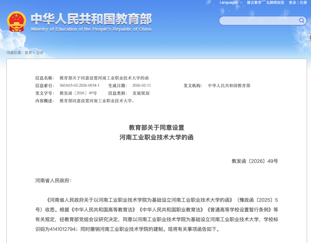 教育部同意!河南:新设2所,本科高校!